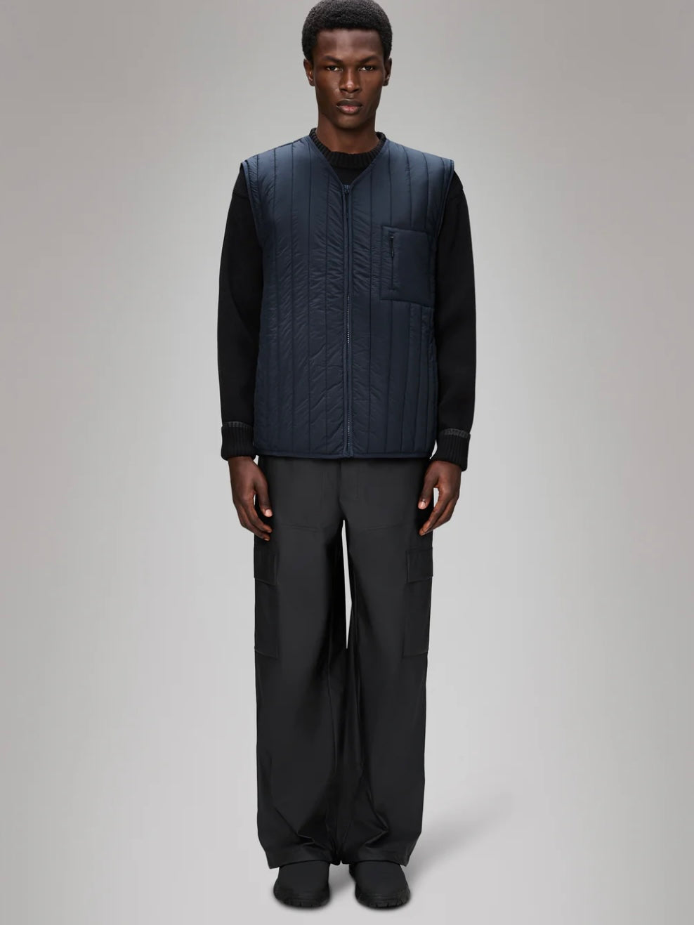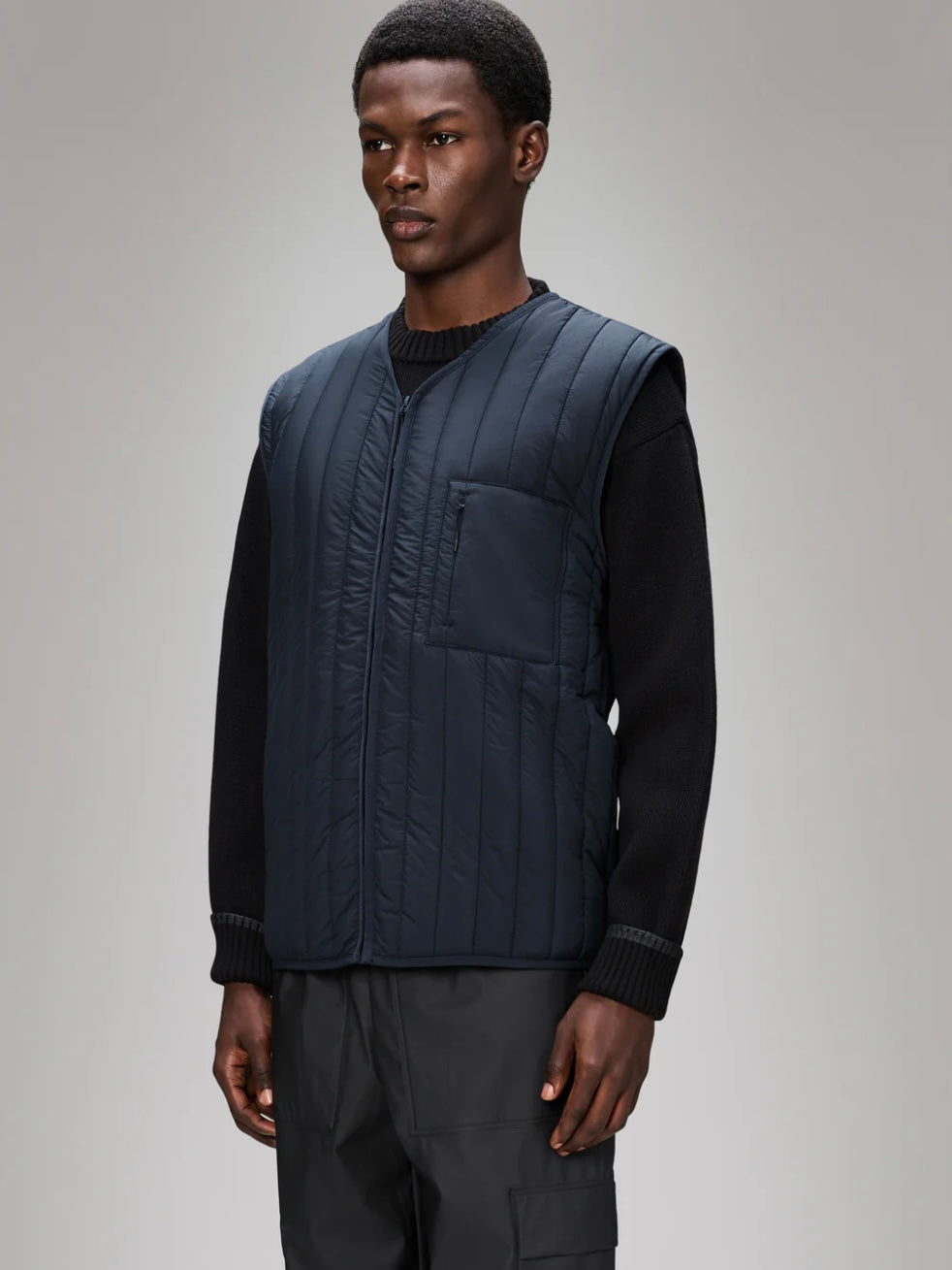 Banja Liner Vest is a versatile piece with a clean, sporty aesthetic. It's designed to be worn under outerwear or as a light top layer.