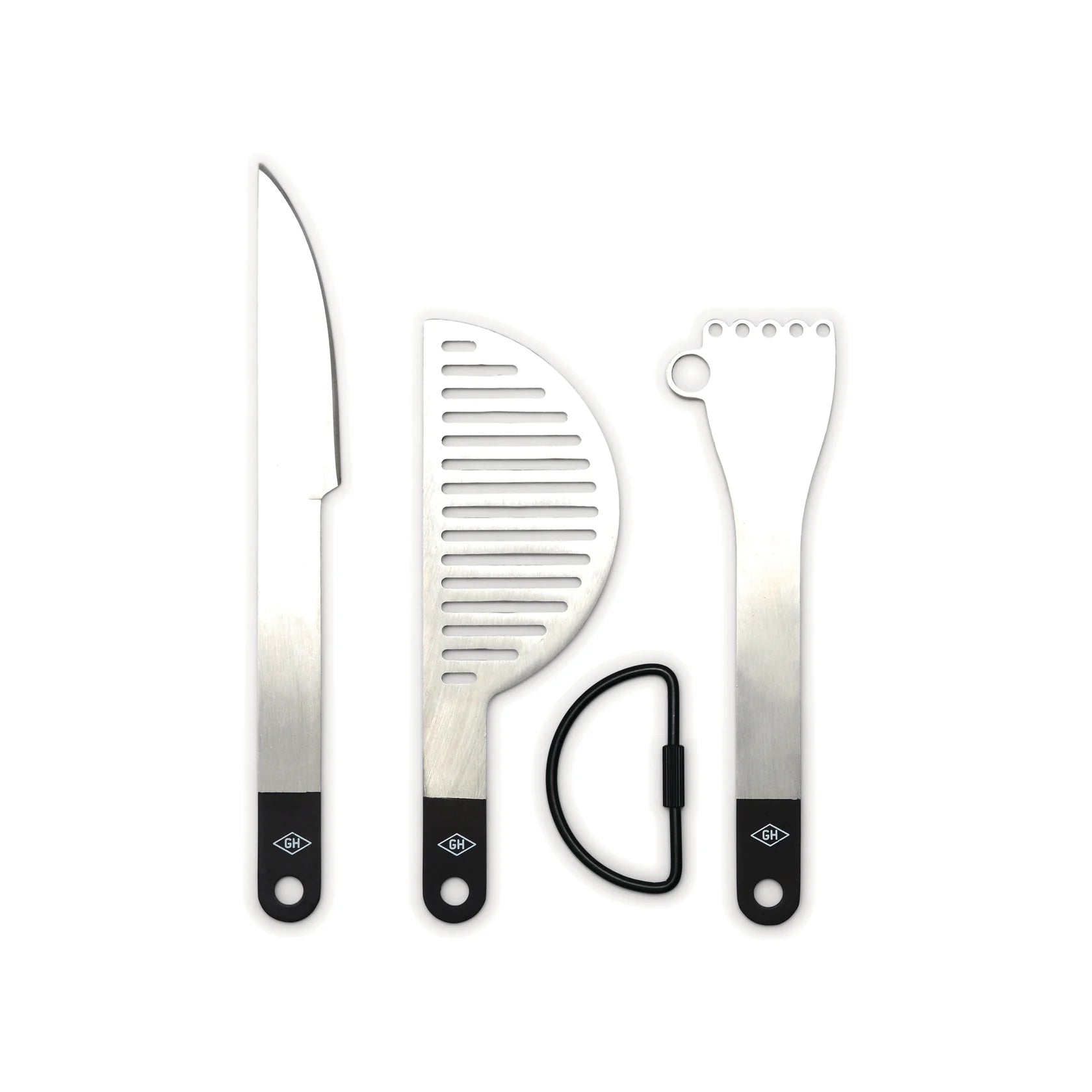 Upgrade your cocktail toolkit with our compact bar tools! Each set features a stainless steel zester, strainer, and knife for crafting your favorite cocktail from the comforts of home! Keep all of your tools together for easy access with included carabiner.