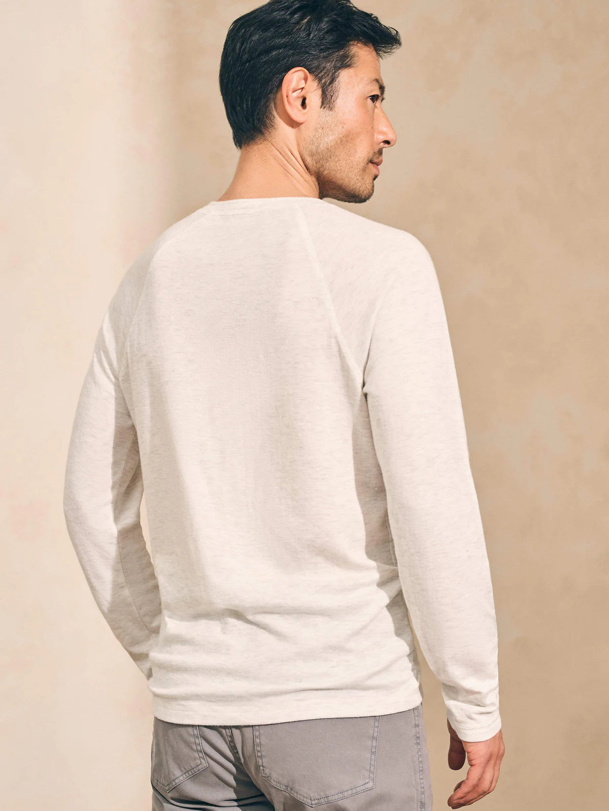 - Detail: Henley neckline, pullover style. Long raglan sleeves.