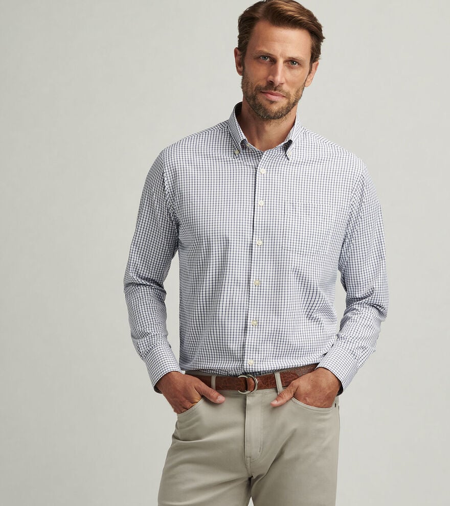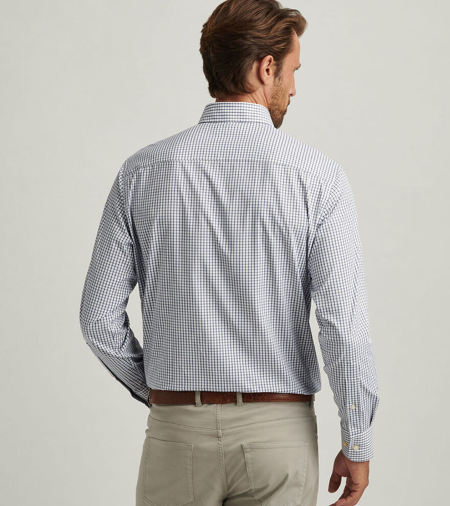This sophisticated essential conveys the classic look of a twill shirt in an innovative, comfortable and versatile performance fabric. It features easy-care, two-way stretch, moisture-wicking and UPF 50+ sun protection. It features a classic check pattern and is finished with a button-down collar and a French placket.