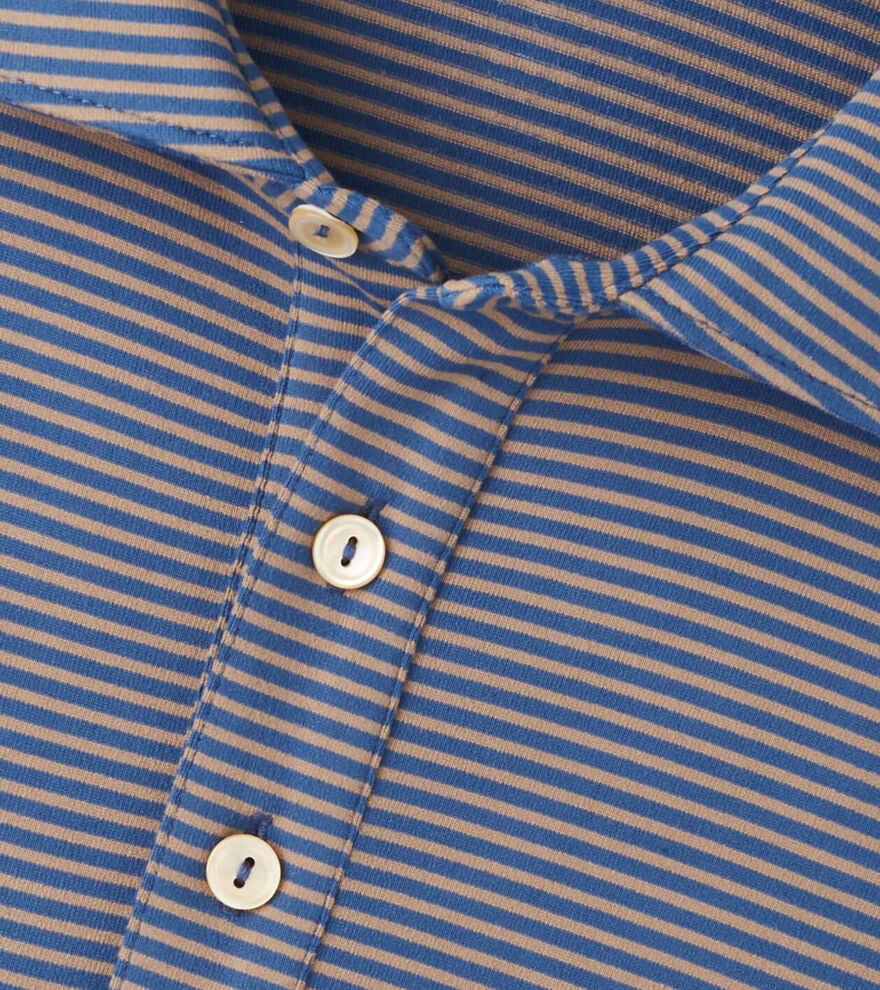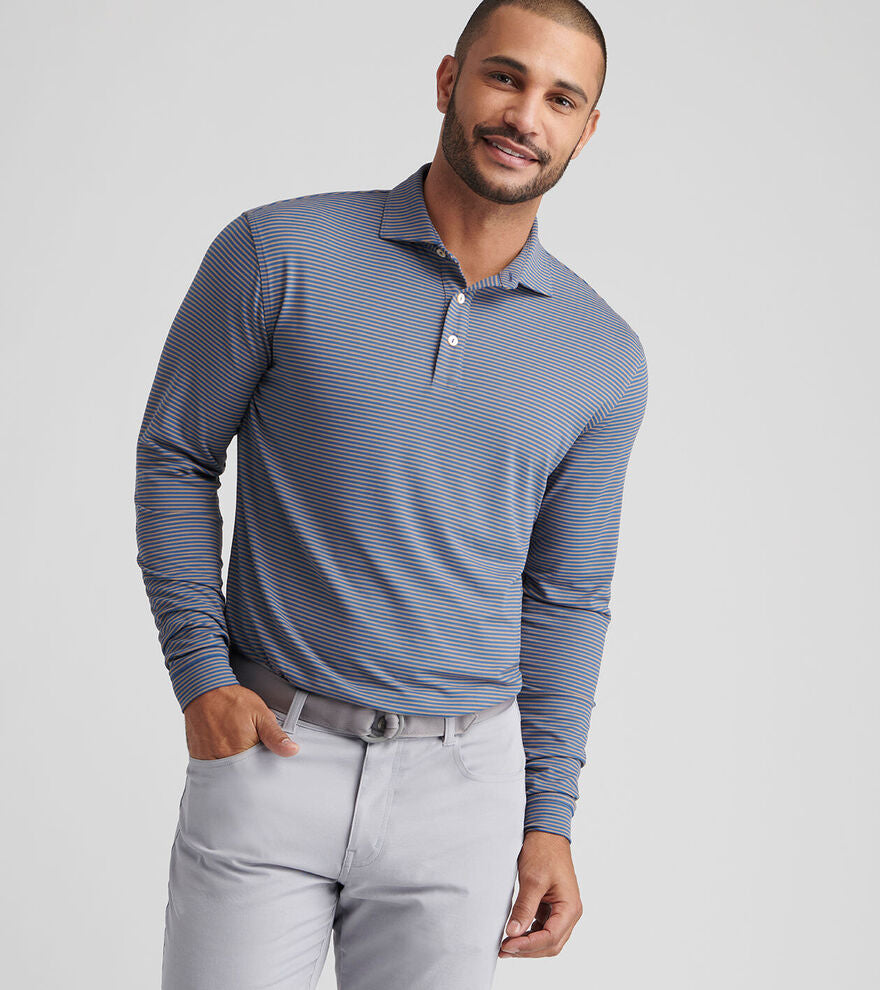 Enjoy incredible comfort wherever your day takes you in one of our signature long-sleeve performance polos. It's made from a soft jersey fabric that features moisture-wicking, UPF 50+ sun protection, odor-resistance and easy-care, with four-way stretch for optimal mobility on and off the golf course. Finished with an Edwin self-fabric collar and three-button placket. Men's 92% polyester / 8% spandex polo