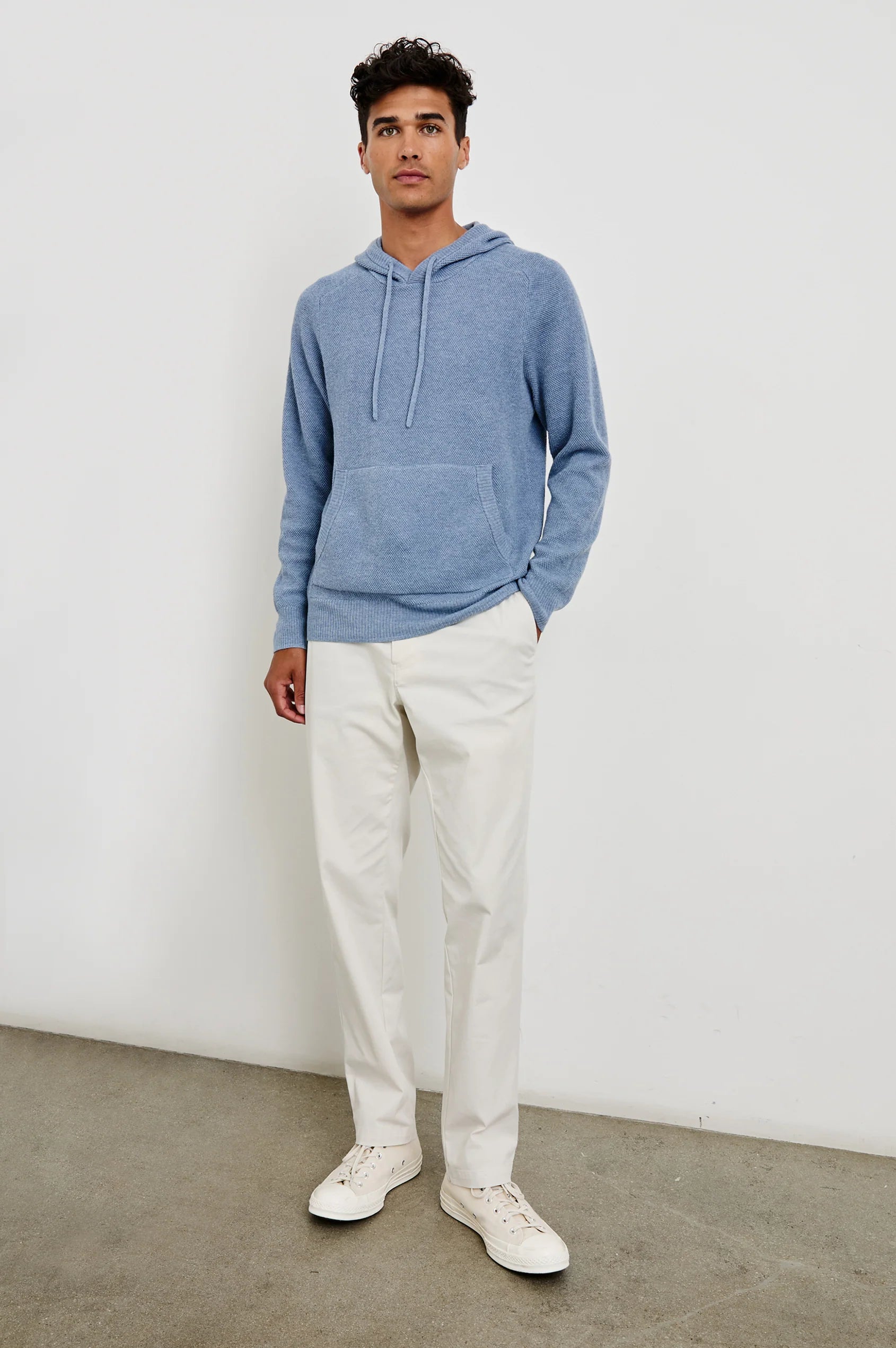 The Matador is a versatile, hooded sweater crafted from a comfortable cotton blend. Featuring a functional drawstring and a textured, medium-weight construction, it’s ideal for layering year-round.