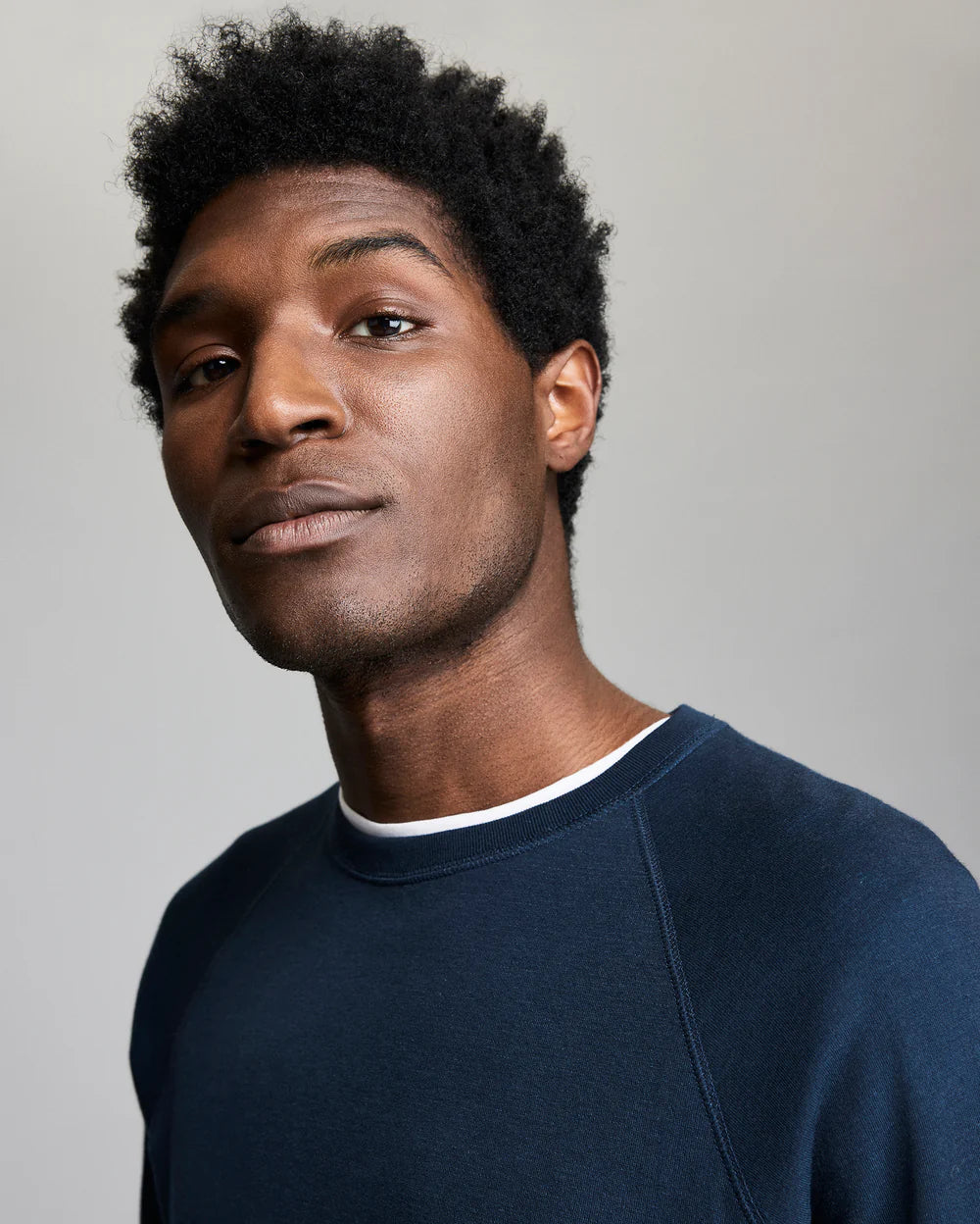 Made with a Pima cotton blend with just the right amount of stretch, giving it an soft hand feel, this raglan sleeve crewneck feels great on the body and can be worn on its own or as an elevated layering piece. Finished with thoughtful details like cover-stitch seams and twill tape reinforcement at the back neck. 49% Pima Cotton, 49% Modal, 2% Polyester