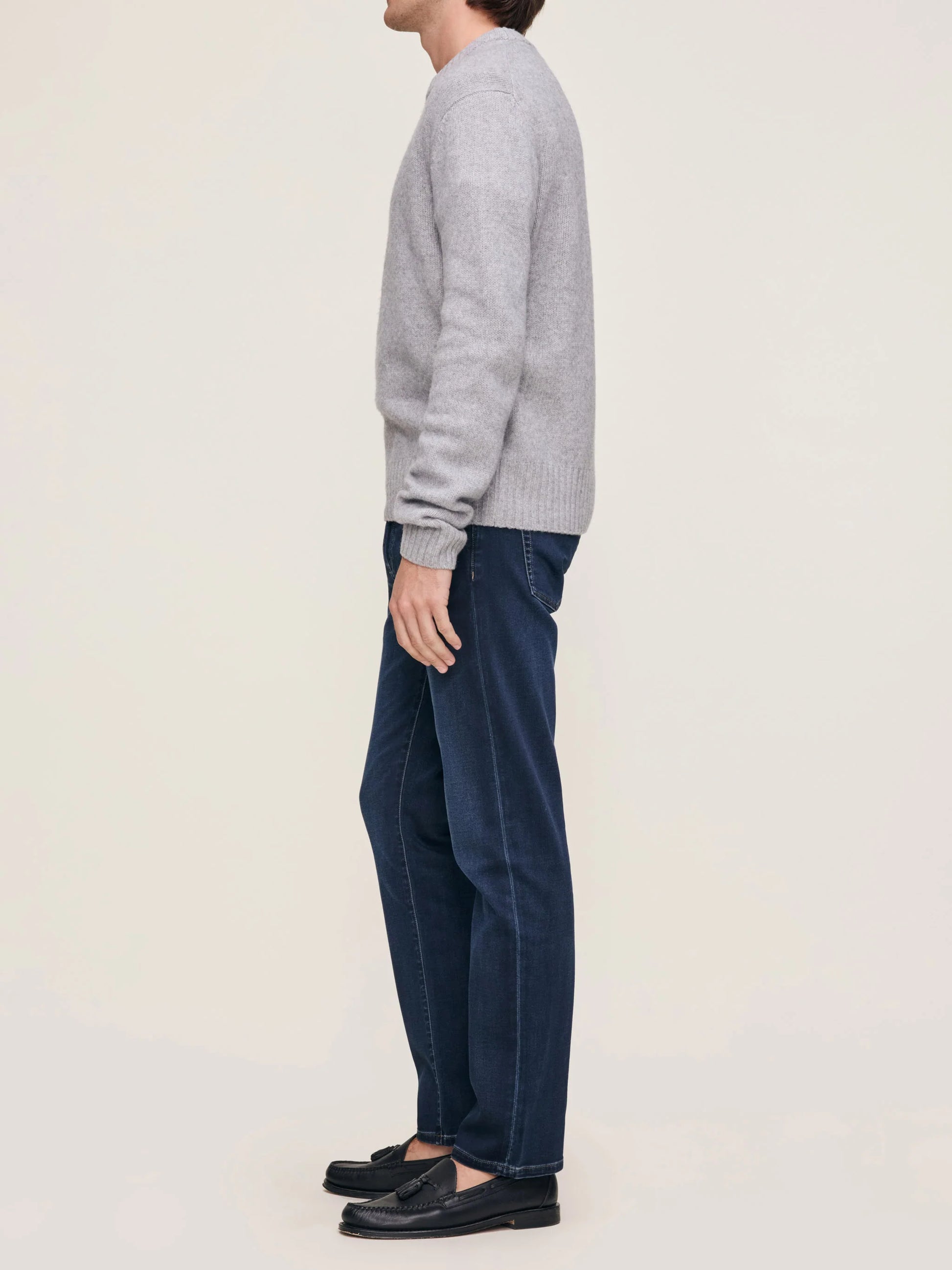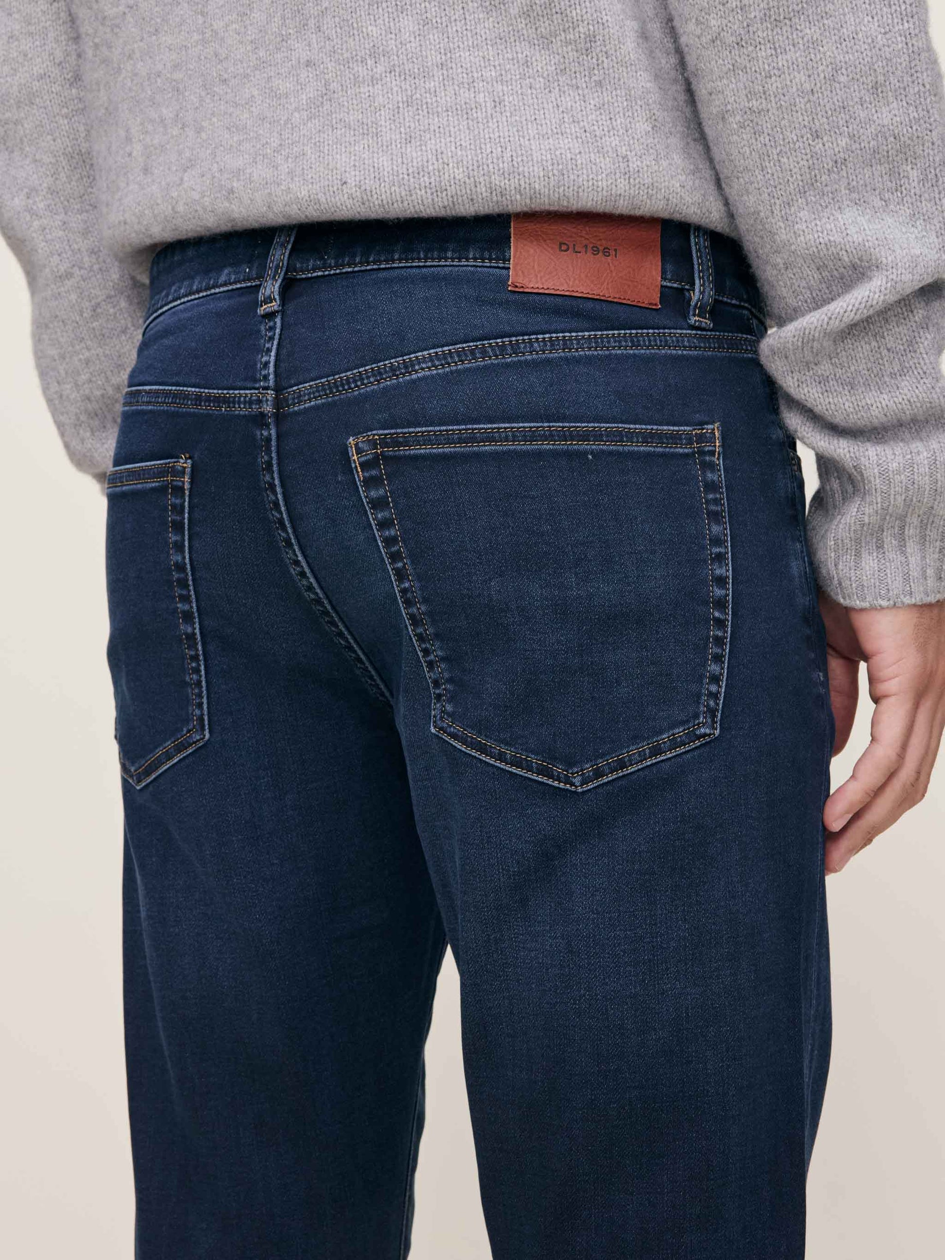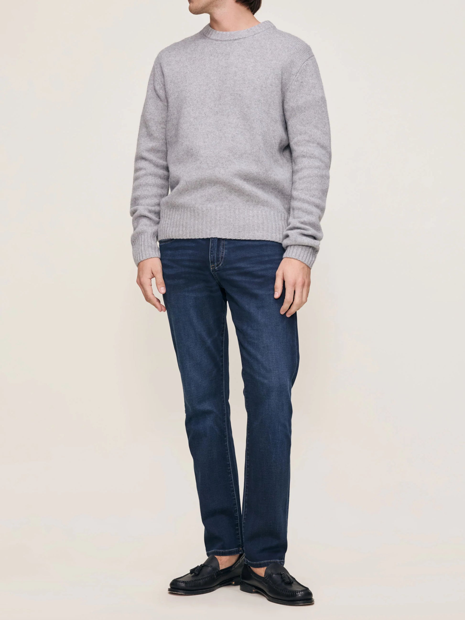 Newport is a mid-to-dark indigo wash with subtle fading and whiskering in our super soft knit denim. It features silver shank, copper rivets, khaki stitching, a clean hem and a brown back patch.