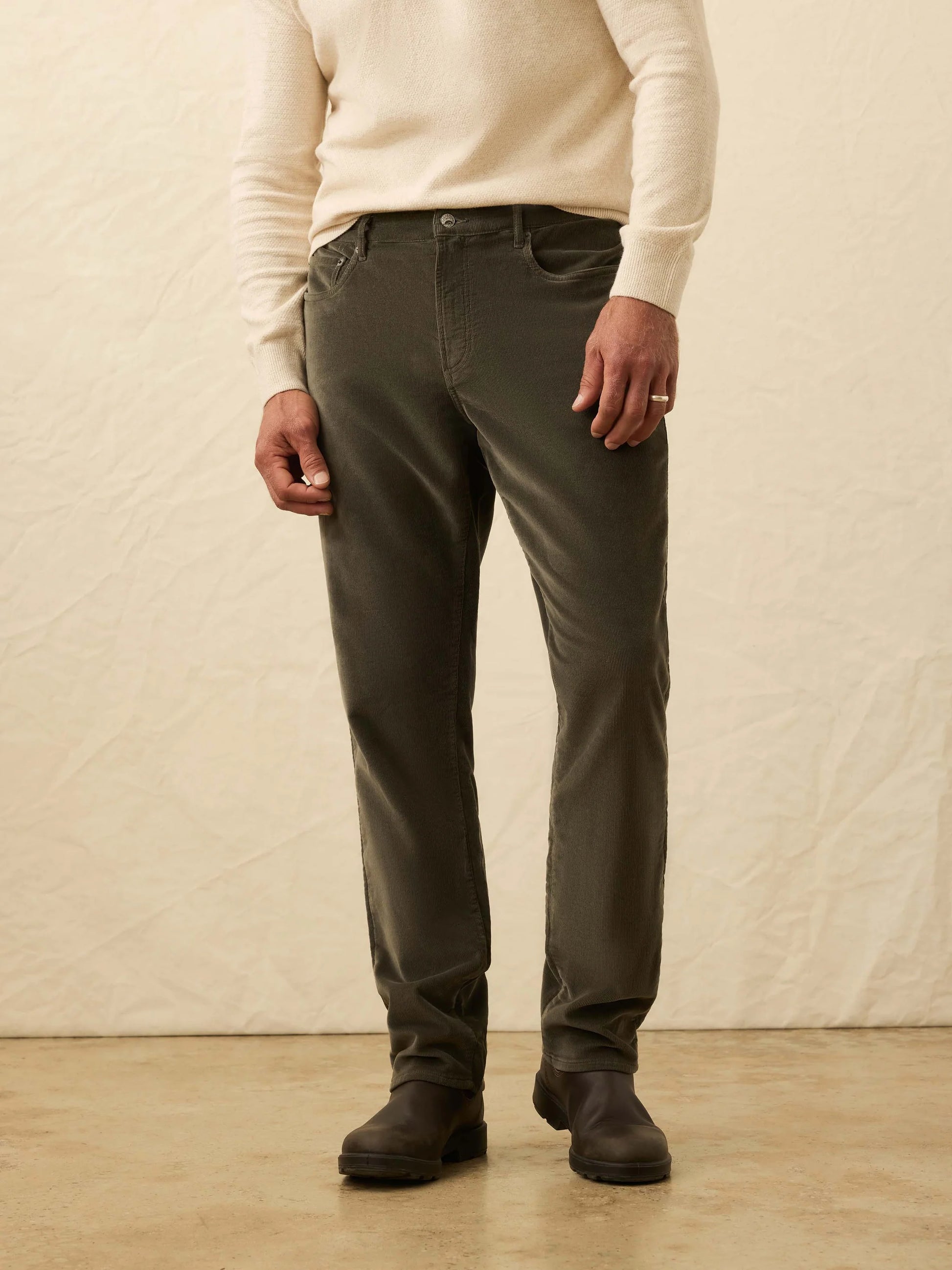 The corduroy answer to our Stretch Terry 5-Pocket, this pant behaves like a woven pant but has the comfort of being in your favorite sweatpants.
