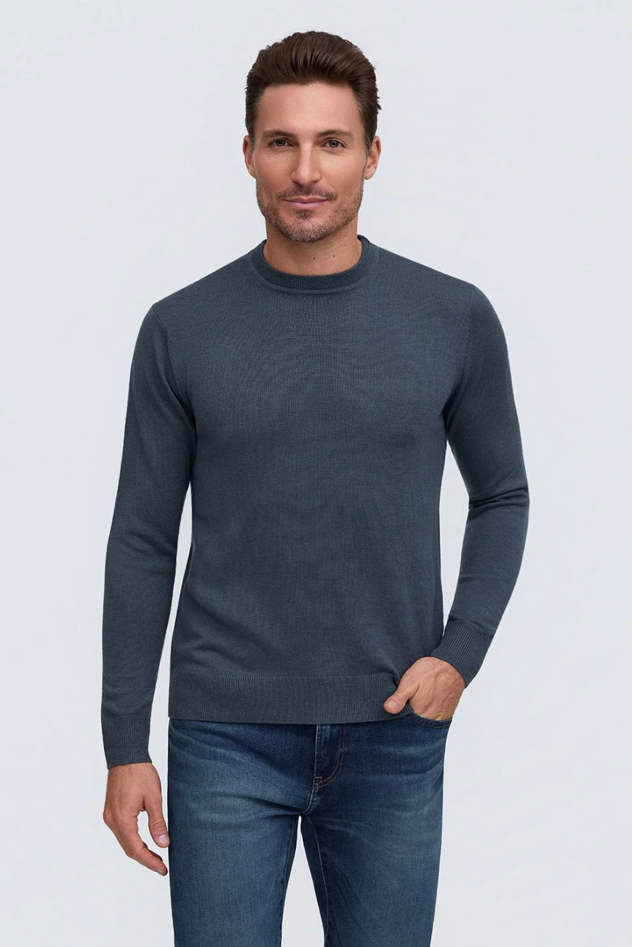 Your search is over for the perfect all-around sweater. Made from 100% Extrafine Merino Wool, The Alfie is a versatile classic that can take you from daytime casual to nighttime dressed year-round, worn on its own, or layered in colder climates. Available in various masculine colors that pair well with our Theo and Jasper pants.