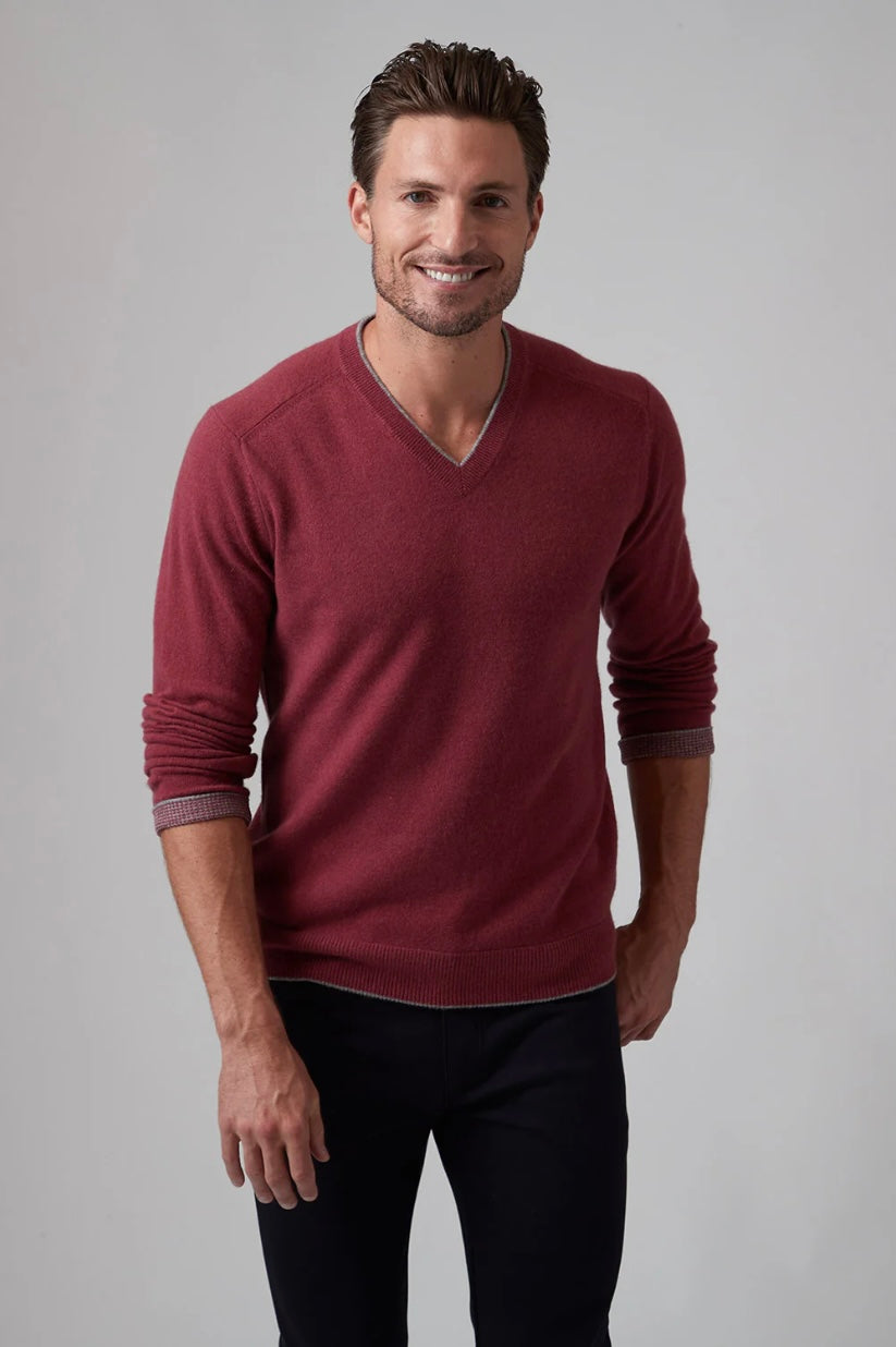 This timeless 100% cashmere v-neck sweater is a must-have for your closet. Soft and comfortable, yet slightly fitted for a polished look, The Garrett comes in an array of colors to wear alone for a casual look or layered over a button-down to the office.
